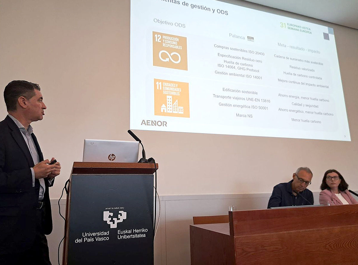 Durante la sesión, Gonzalo San Antonio director de AENOR en el País Vasco, abordó el papel de las certificaciones y modelos de gestión como palancas de cambio hacia una sostenibilidad medible, destacando la necesidad de contar con una Estrategia que integre de forma efectiva los ODS en las organizaciones.